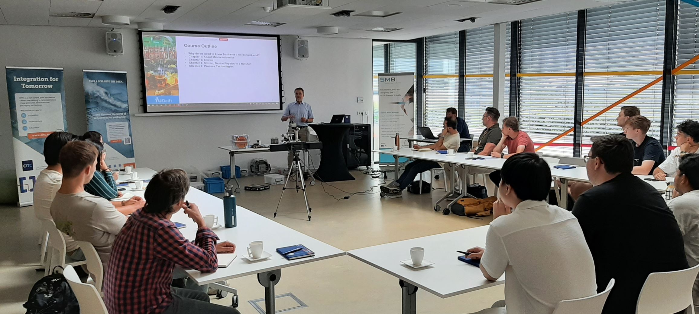 As in the four previous editions, the participants consist of a mix of students and professionals. Joop Bruines, education consultant at CITC and also working at HAN University of Applied Sciences (HAN), is happy with yet again a full classroom: “We have a good mix of people. In addition to industry participants from semiconductor companies such as ITEC, NXP, Sempro and iPronics, there are fifteen bachelor students from HAN and similar Dutch universities of applied sciences and from Rhein-Whaal Hochschule in Cleves. And there is one PhD student from University of Twente.”